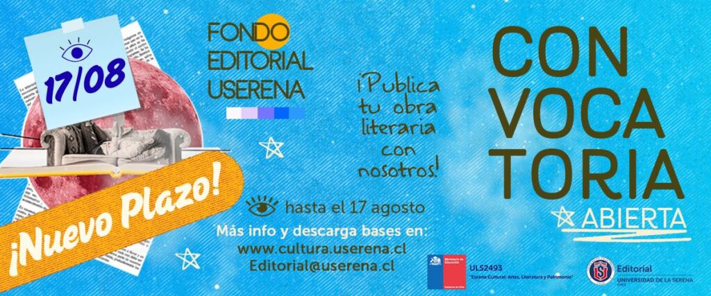 Este fondo, enmarcado en el proyecto ADAIN ULS 2493 “Escena Cultural”, entrega apoyo económico y acompañamiento editorial para la publicación impresa y/o digital de obras inéditas. Se seleccionarán hasta tres propuestas, las cuales formarán parte del catálogo de Casa Editorial USerena.