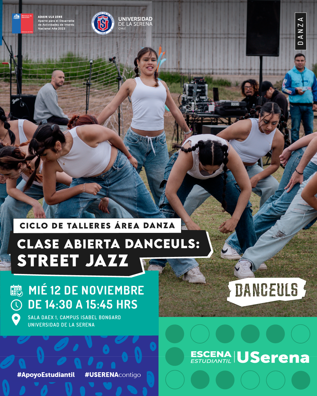 💃🔥 ¡Seguimos moviéndonos con el Ciclo de Talleres del Área Danza! Este miércoles 12 de noviembre, DanceULS te invita a su clase abierta de Street Jazz, un estilo que mezcla la energía del jazz con la libertad y el flow del street dance 🎶✨.