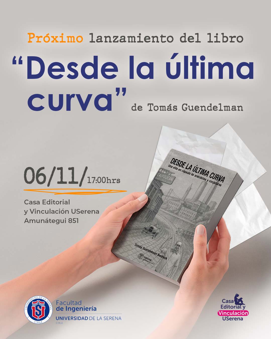 06nov5:00 pmLanzamiento libro: Desde la última curvaCasa Editorial USerena, Amunátegui 8515:00 pm